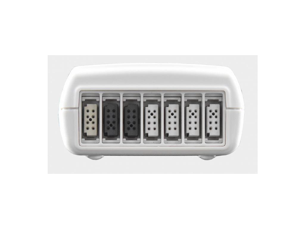 Přístroj má 2 zásuvky pro různé výstupní moduly, např. datakabely pro PC, alarm a trigger kabely, analogové výstupy, bluetooth, ethernet.