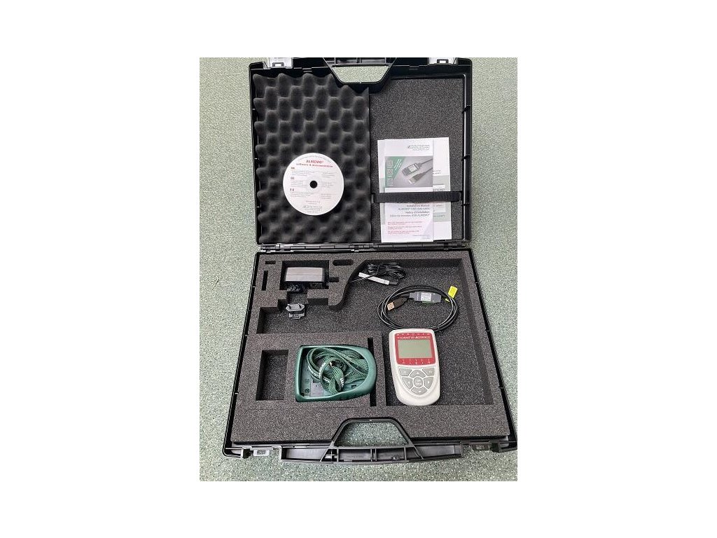 Sada sestávající z dataloggeru ALMEMO® 202S, ochranného gumového pouzdra, síťového adapteru 230 V AC/12 V DC, datakabelu USB, transportního kufru a software ALMEMO®-Control.