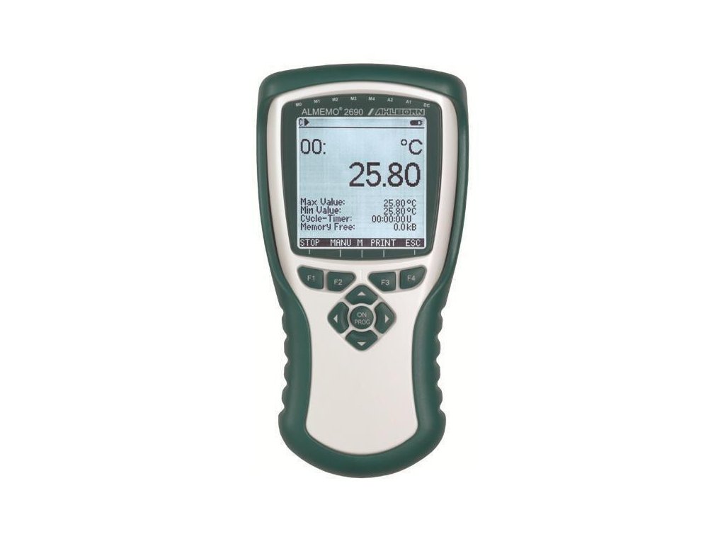 ALMEMO® 2690-8A - kombinovaný univerzální ruční měřicí přístroj s 5 univerzálními vstupy, 2 výstupy (RS232, analog, Centronics ad.) a vnitřní pamětí EEPROM pro uložení až 200.000 měřených hodnot v předvoleném časovém měřicím cyklu.
