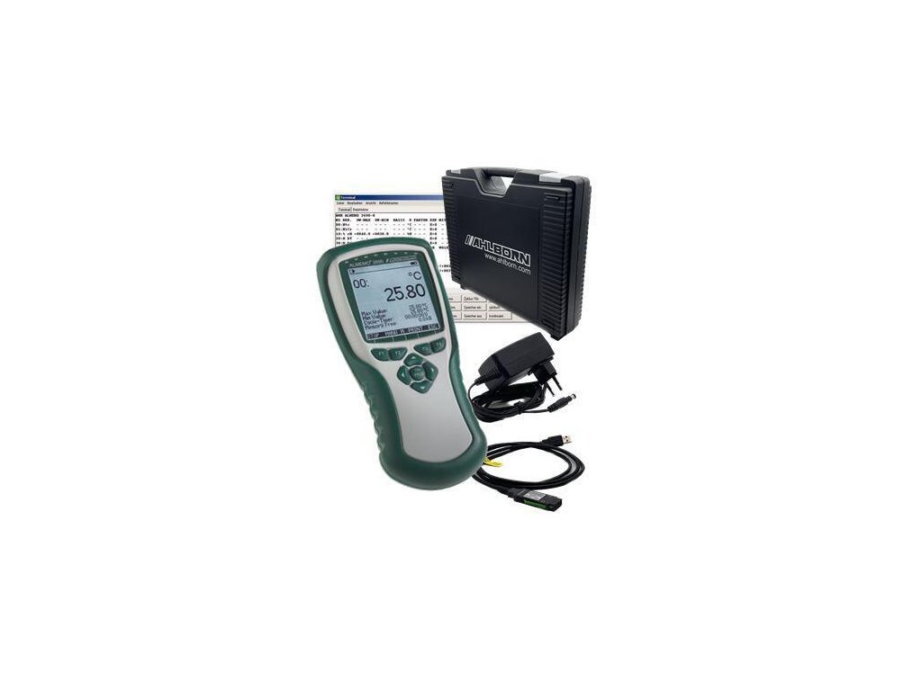 Sada včetně akumulátorů, síťového adapteru 230 V AC/12 V DC, datakabelu USB pro připojení k PC, software ALMEMO®-Control a transportního kufru.