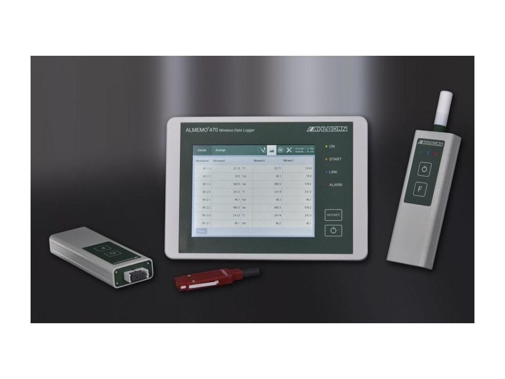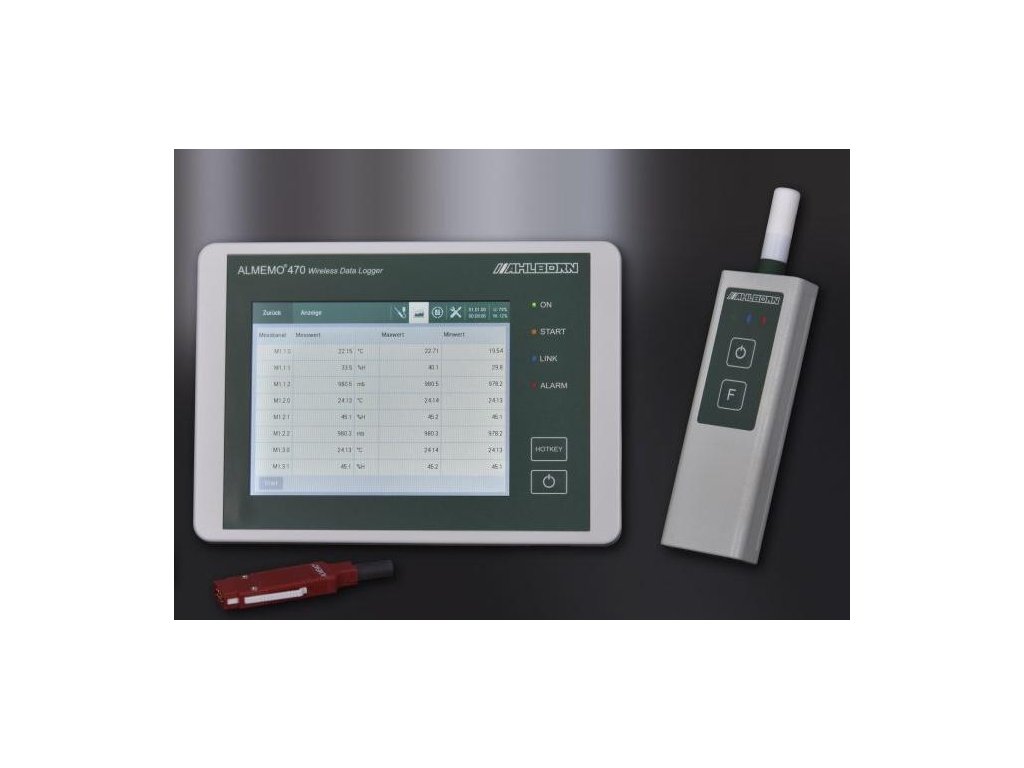 Bezdrátový datalogger ALMEMO® 470-1 je profesionální měřicí přístroj, který přijímá naměřené hodnoty opatřené časovým razítkem ze vzdáleně umístěných bezdrátových snímačů, tyto hodnoty ukládá a zobrazuje je na grafickém displeji. Příjem naměřených hodnot probíhá v cyklech, které lze individuálně upravovat pro jednotlivé bezdrátové snímače, např. pro měření v klimatických komorách, či pro dlouhodobá měření.