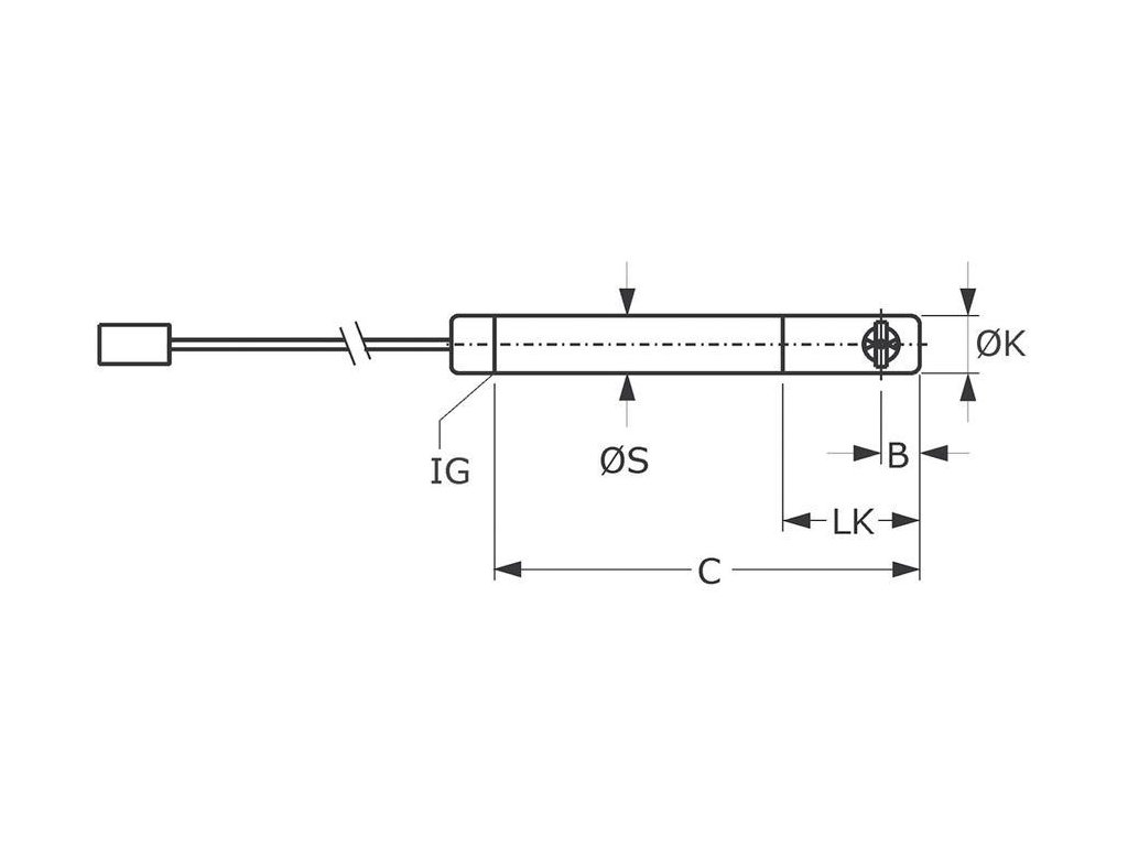 Rozměry: průměr 16 mm, délka D=163 mm, kabel 2 m + adaptérkabel 0,2 m s ALMEMO®-D6 konektorem