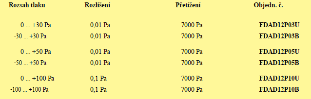 - snímače s vysokou přesností určené pro kladné a záporné diferenční tlaky