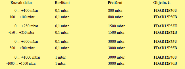 - snímače s vysokou přesností určené pro kladné a záporné diferenční tlaky